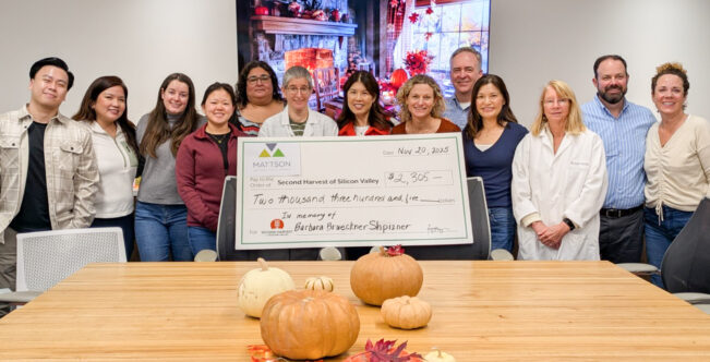 This year, the Foundation continued its mission to fight food insecurity through its partnership with Second Harvest of Silicon Valley, contributing $3,805, equivalent to over 15,000 meals, to help ensure that our neighbors have access to nourishing food. Beyond financial contributions, Mattson team members also volunteered at Second Harvest events, distributing food directly to families in our local community.